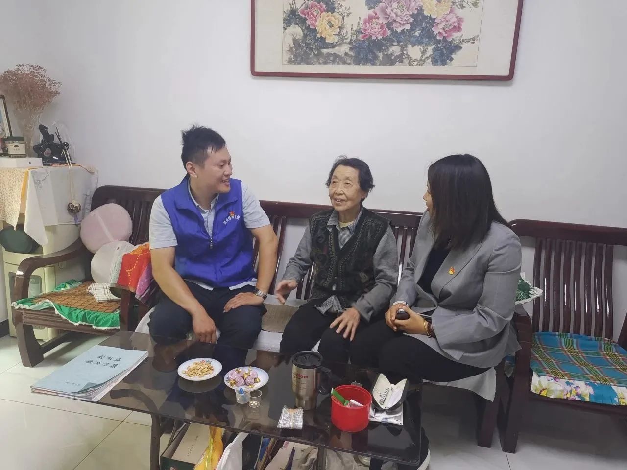 随后普发公司党支部来到凤园社区,看望居住在这里的留守老人、病残老人们。普发公司为老人们带去了米面、牛奶、鸡蛋等慰问品,与老人们坐下来谈心,详细关心询问他们的生活近况、饮食起居。64岁的空巢老人潘阿姨,她的爱人在36岁时便因公去世了,独自把孩子抚养长大的她如今孩子也去了北京定居,她表示幸亏有社区和普发公司对她的记挂,让独居在家的她也感受到了节日的温暖,虽然已到晚年,但自己也会继续发挥余热,积极投身公益回报社会。