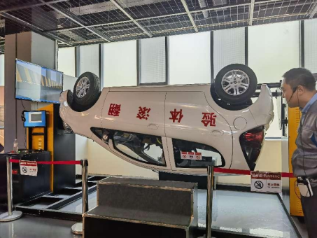 交通安全体验模块,通过软件模拟针对车辆在翻滚的过程进行高度逼真翻滚体验,使乘坐者有一个模拟真实的车辆翻滚体验全过程,让培训人员认识到安全带的意义、生命的宝贵,深刻认识安全驾驶重要性。