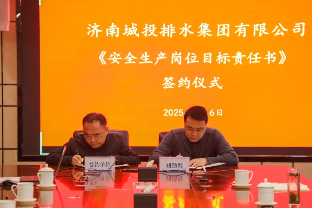会议首先观看了复工复产安全生产警示教育片,共同学习了市安委办《关于做好全国、全省“两会”及春节期间安全防范工作的通知》《关于扎实开展开工“第一课”活动加强复工复产安全防范工作的通知》,刘勤教与市场开发部、济南普发水务工程有限公司等代表单位签订2025年安全生产岗位目标责任书。